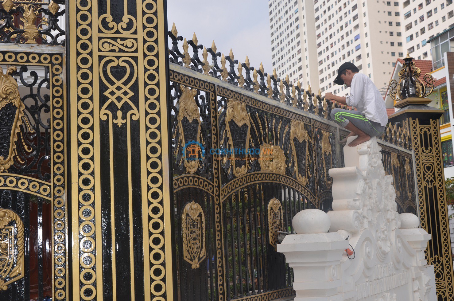 Để tạo ra hình dáng cổng nhôm, sau các công đoạn trên là công đoạn làm sạch, nhẵn bề mặt cổng và sơn màu cho cổng đẹp phù hợp với ngôi nhà. Cổng nhôm đúc được làm sạch, đánh bóng, sơn tĩnh điện và sơn thủ công 5 lớp, giúp độ bền màu cao và thể hiện được sự sang trọng của sản phẩm.