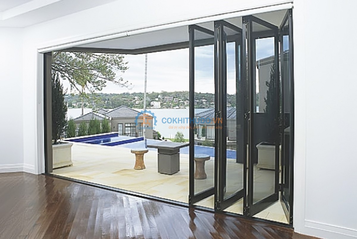 + Với cấu tạo kết hợp giữa ray trượt và trục bản lề giúp các cánh cửa xếp gọn sang 1 bên giúp mở hết được diện tích ô cửa, không ảnh hưởng đến không gian sử dụng.